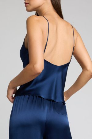 An elevated. sculptural silk cami with perfect. body-hugging bias cut 100% silk.